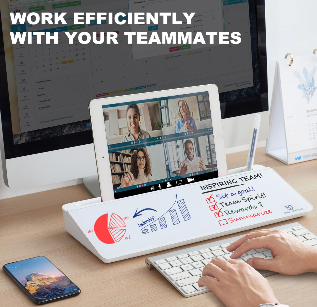 - SMOOTH WRITING & EASY TO WIPE: TSJ OFFICE mini desktop computer pad comes with a smooth and durable temple glass dry erase writing surface. This white board allows you to write and wipes clean with ease over and over. Our easel whiteboard always stays white and easy to read.
