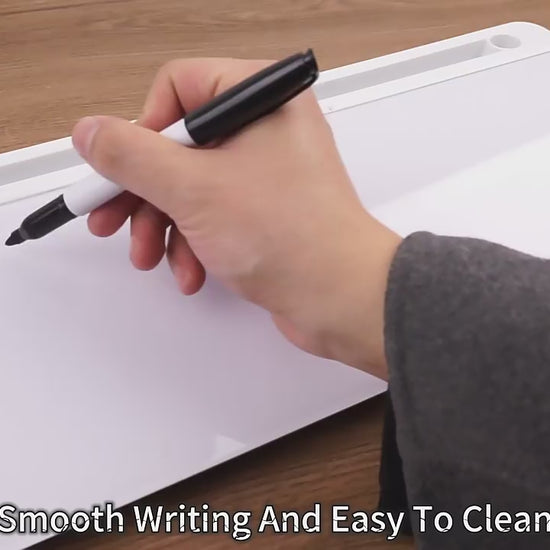 - CONTAINS EVERYTHING YOU NEED - This small glass whiteboard kit includes a W 15.8 " x D 7.1 " x H 1.9 " Desktop glass whiteboard, 4 markers and 1 eraser. It comes with everything you need. Enjoy the standing whiteboard as soon as you receive it!